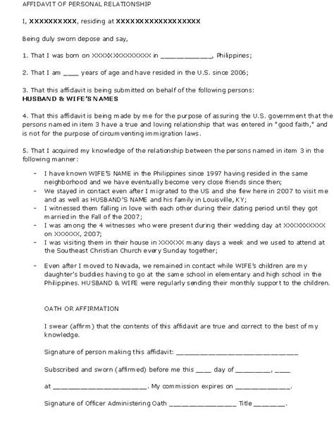 I 751 Affidavit Template Free Resume Templates